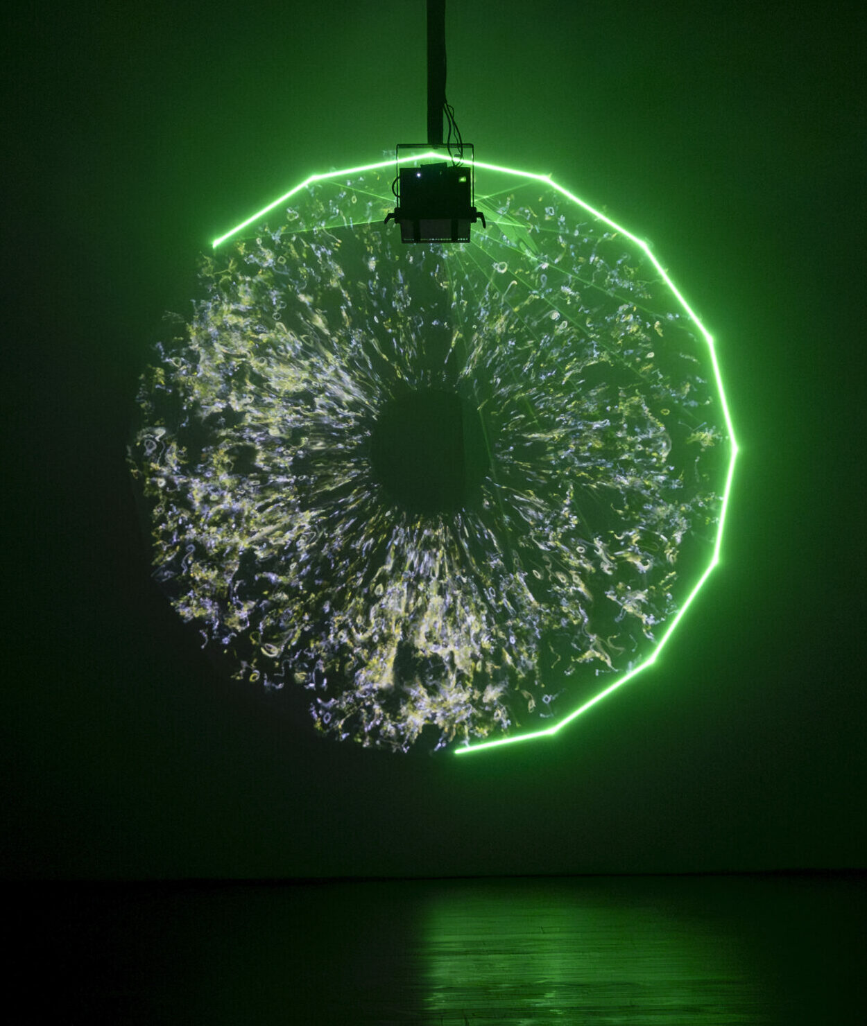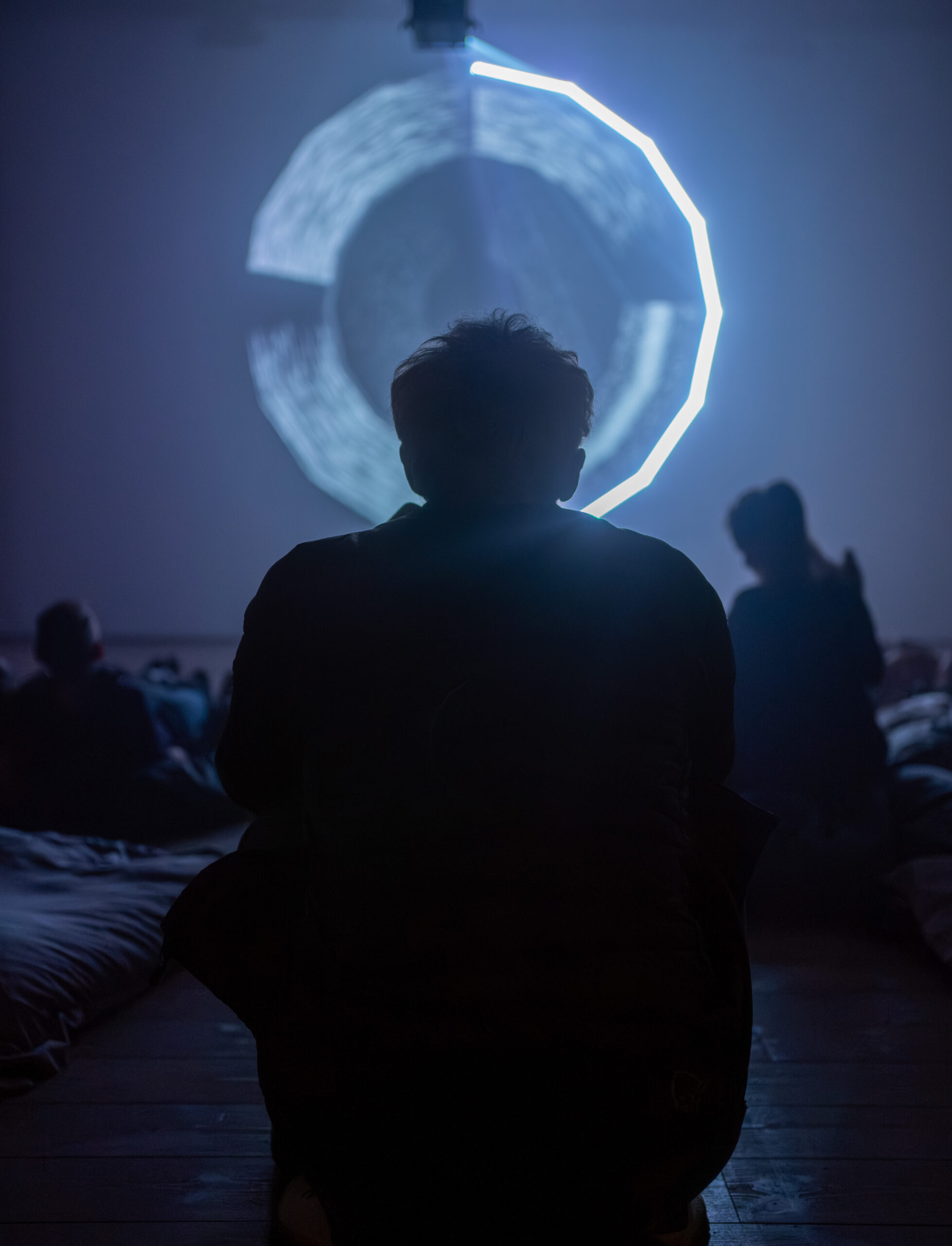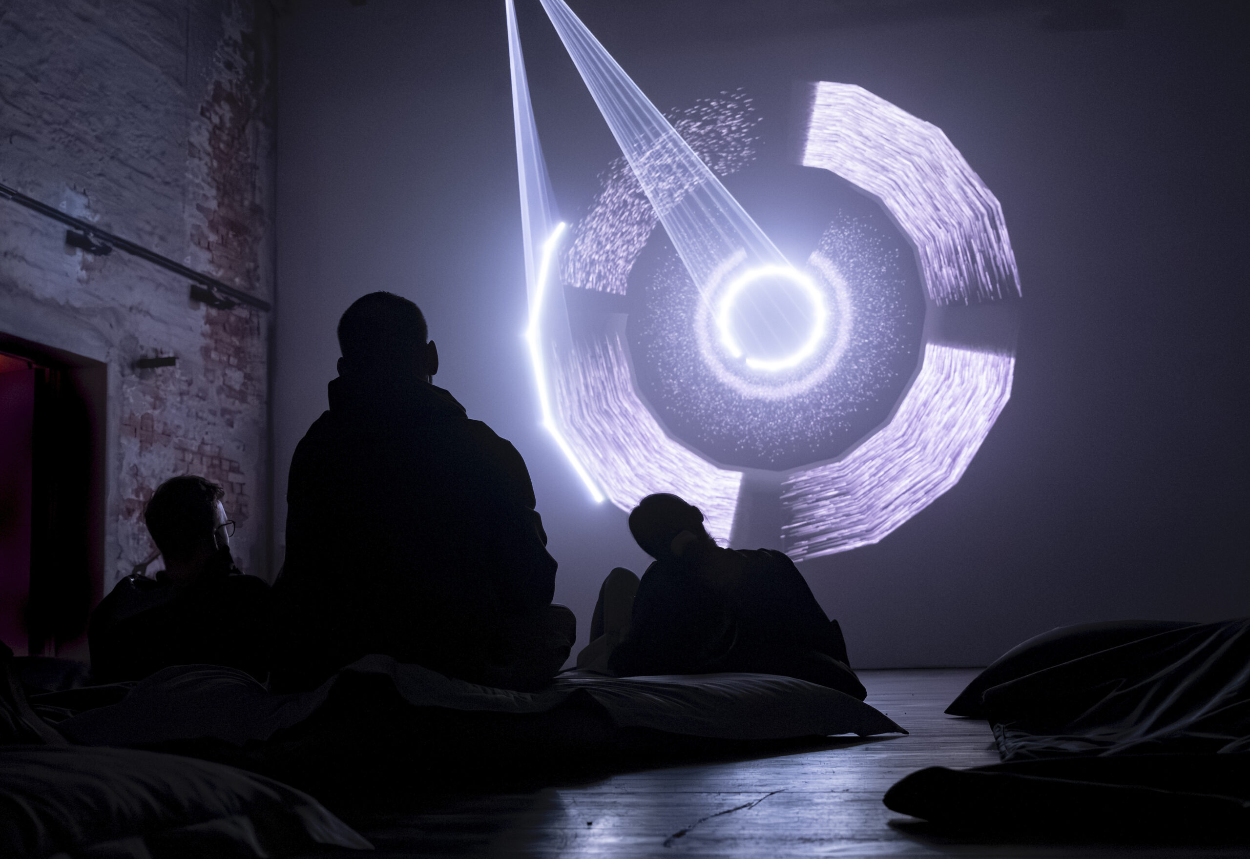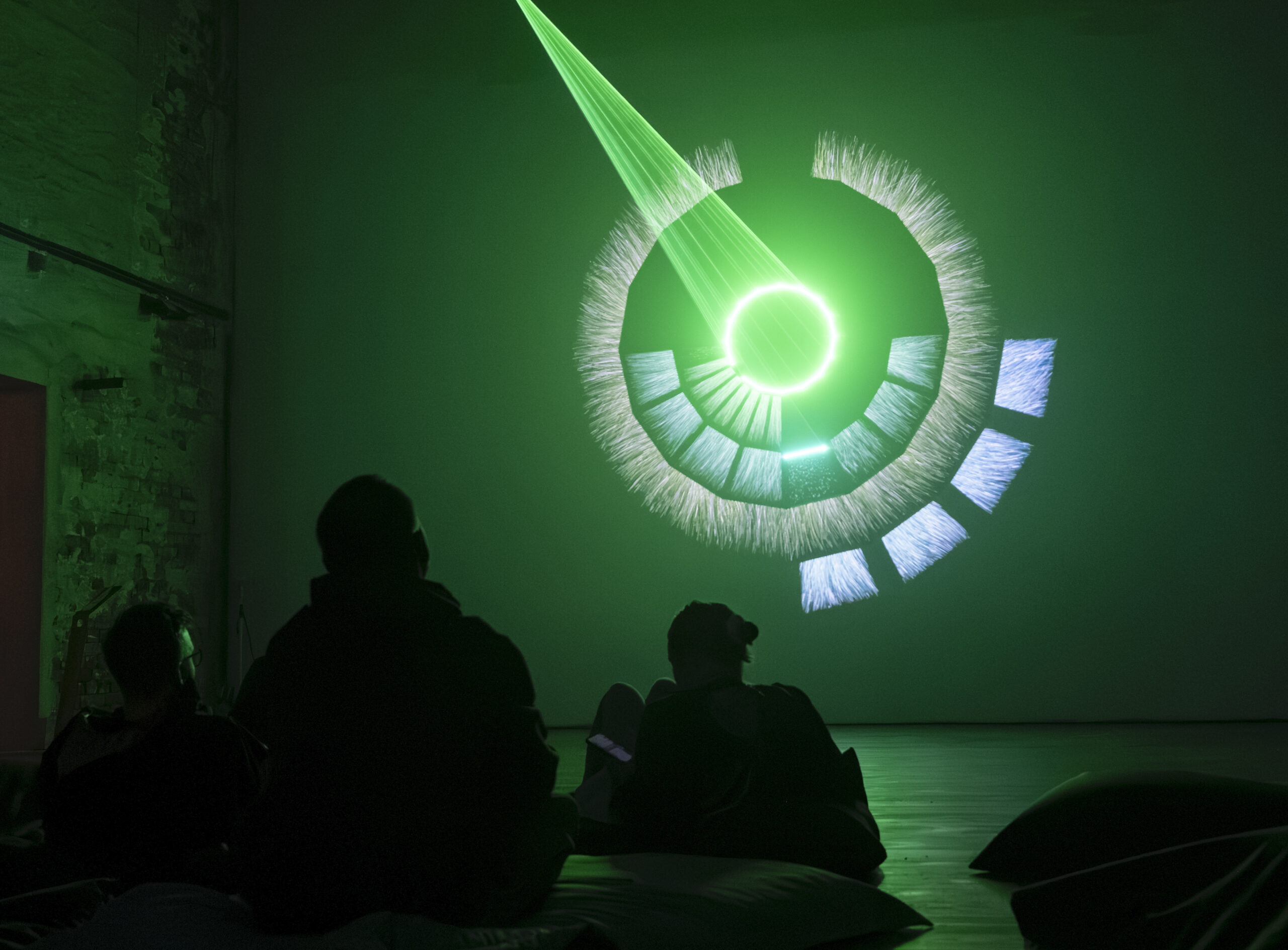 hex/A\ is an installation that fuses audio, video, and laser into a unified, immersive experience. Drawing on collective imagination through its retrofuturistic dimension, the work evokes the past, present, and future as a single, timeless symbol.